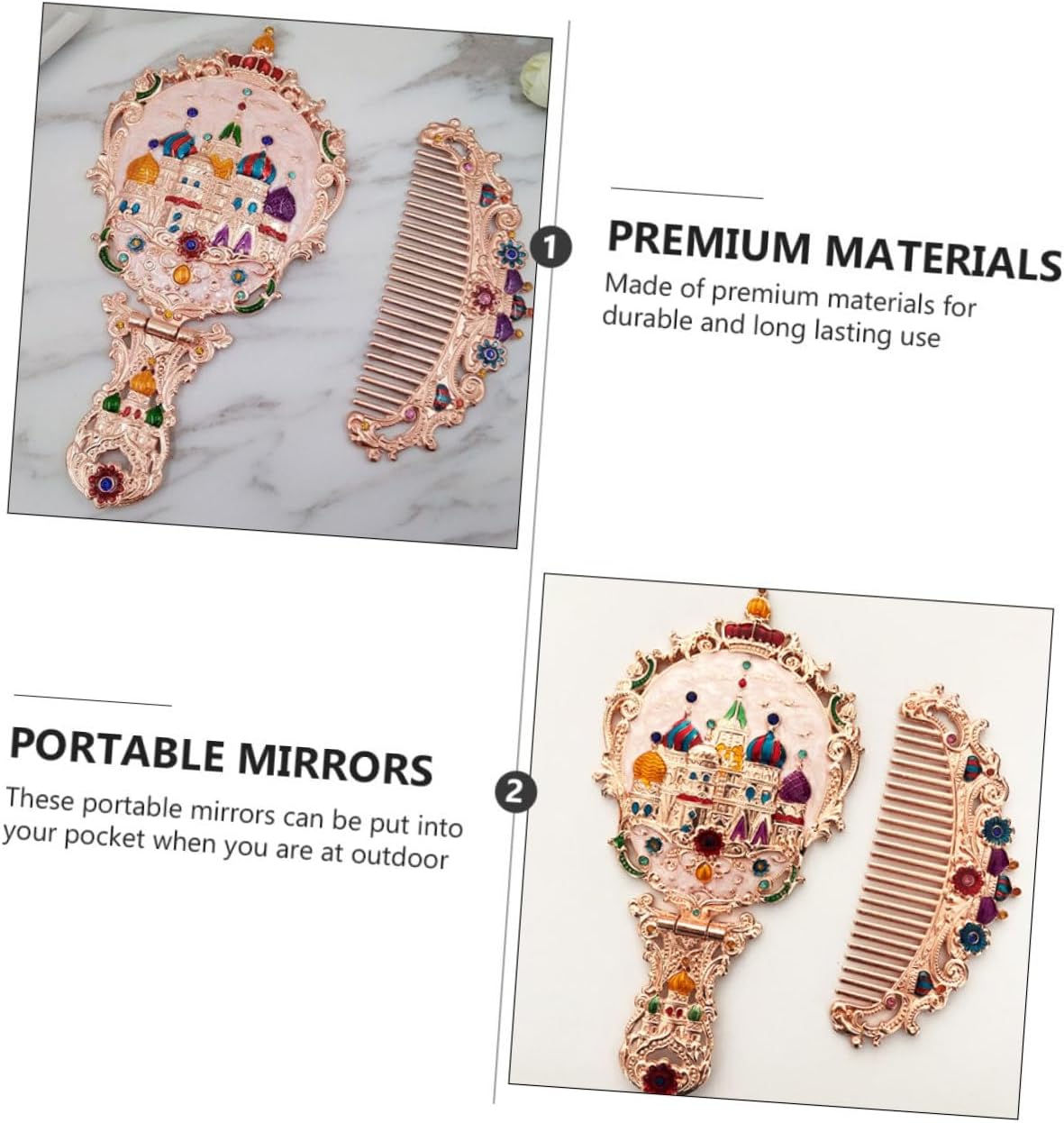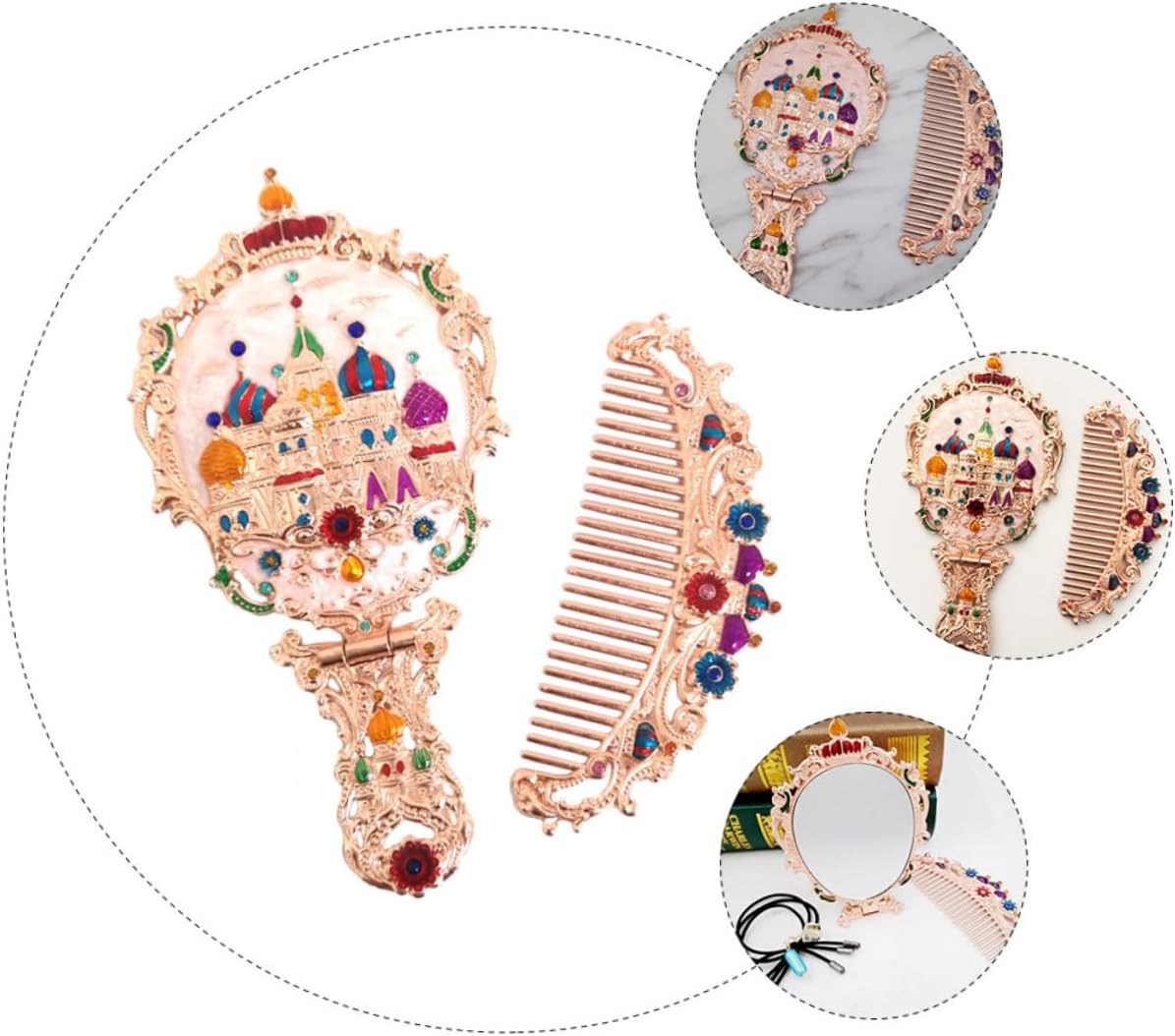 Description This is a set of compact makeup mirror with a comb, which is made by , durable for long time use. Small size, light weight, suitable for you to carry around in your handbag or even your pocket. A for your female friends. Features- Color: rose golden.- Size: 17cm*8.5cm*1cm- Material: metal.Package Including 1 x mirror 1 x comb