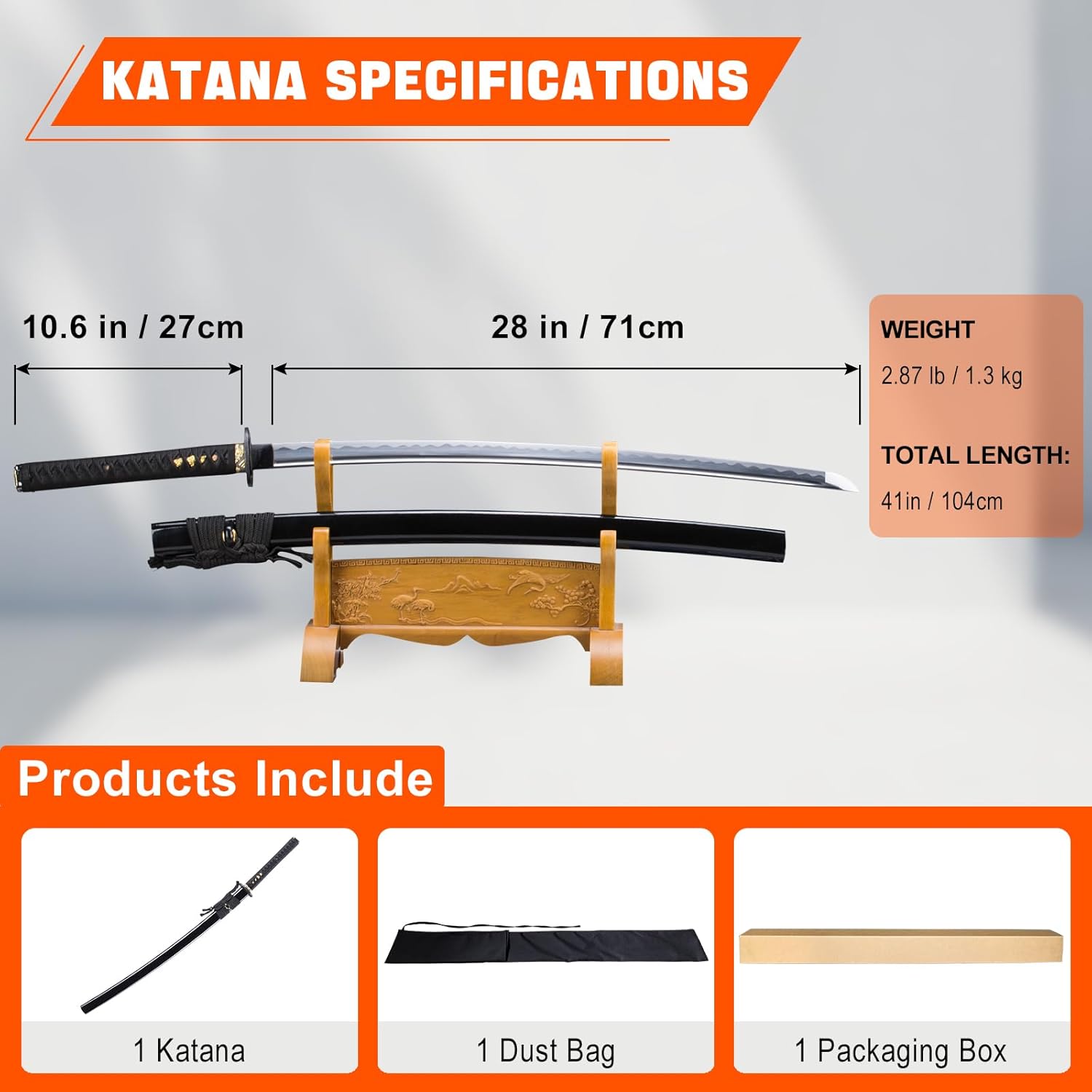 This authentic samurai sword is made of high-quality 9260 high-carbon spring steel, crafted through multiple processes including hand forging, blade blank refinement, high-temperature oil quenching, and hand-polishing of the blade edge. Thanks to the unique properties of 9260 high-carbon steel—excellent hardness and good toughness—this handmade samurai sword delivers impressive performance in outdoor activities.