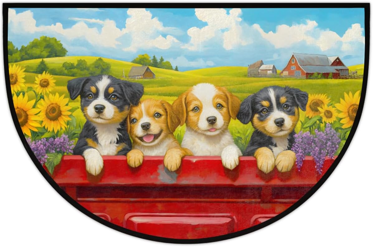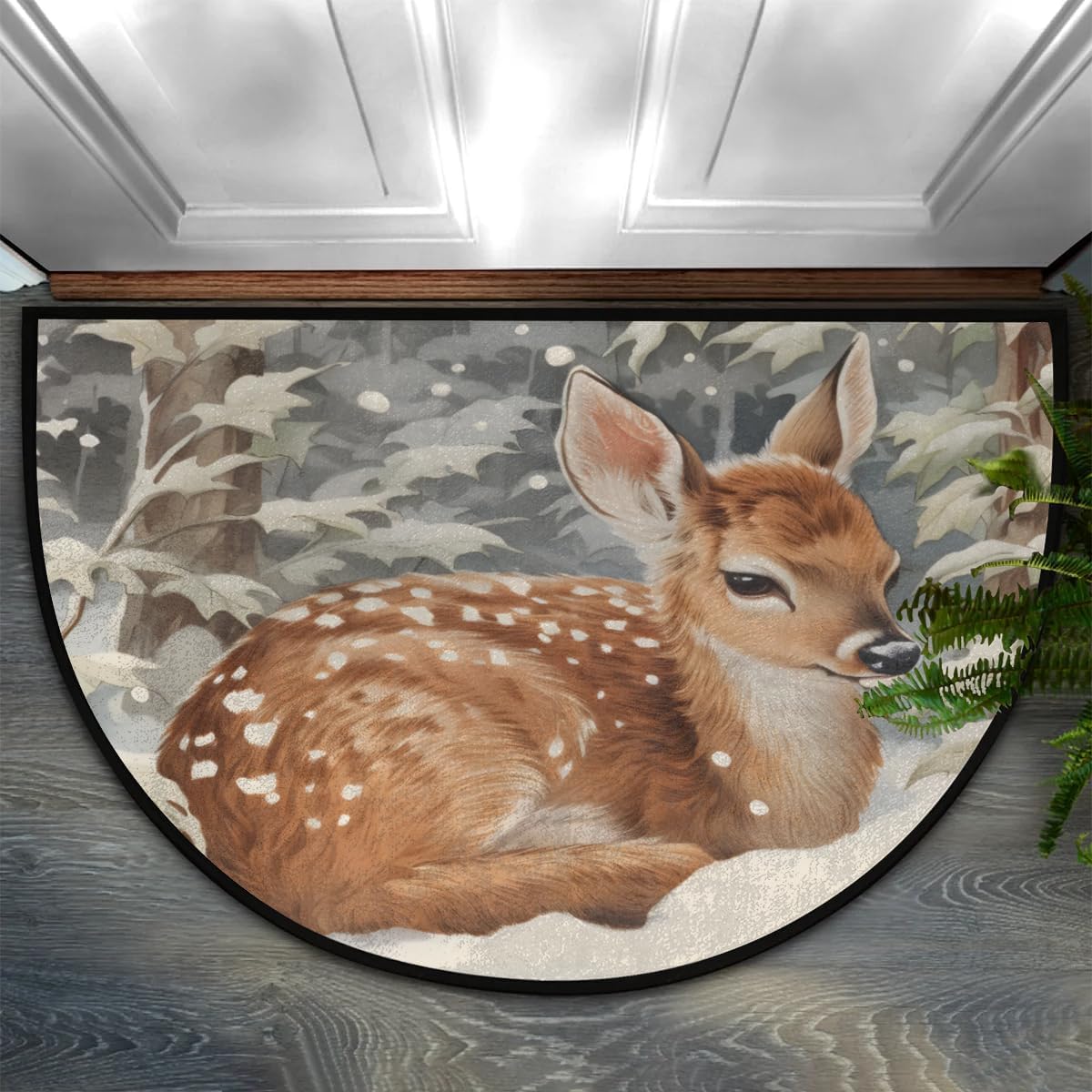 Half Round Door Mat 24"x36" Indoor Outdoor Semi Circle Rug, Non-Slip Half Moon Entrance Mat, Absorbent Washable Floor Rug for Front Door, Bathroom, Kitchen, Bedroom, Fireplace Low-Profile & Versatile Use – Designed in a half-round shape (24"x36"), this semi-circle entry rug fits easily under doors without gathering or obstructing. Perfect for high-traffic areas like the front door, back door, entryway, patio, garage, kitchen, laundry, or living room. Moisture & Dirt Absorption – Made of fluffy absorbent fabric, this doormat effectively traps water, mud, and dirt from shoes to keep floors clean and dry. Ideal for rainy, snowy, or muddy conditions, offering reliable protection in all weather. Non-Slip & Durable Design – Backed with sturdy rubber, the half moon rug grips firmly to the floor to prevent skidding and slipping. Safe and durable, it stays securely in place for everyday use. (Note: Place on a clean and dry surface for best performance.) Multi-Purpose Half Circle Rug – Works as a front door mat, indoor entryway rug, welcome mat, kitchen rug, bathroom mat, fireplace hearth rug, dog mat, or shoe mat. Suitable for both indoor and outdoor use, keeping your home neat and stylish. Add comfort, style, and functionality to your home with our Half Round Door Mat (24"x36"). Designed in a semi-circle shape, this versatile rug fits perfectly in entryways, under doors, or by fireplaces without blocking door movement. Crafted with absorbent fabric and a durable non-slip rubber backing, it effectively captures moisture, mud, and debris while staying securely in place. Perfect for use as a front door mat, indoor entry rug, kitchen mat, bathroom rug, or hearth rug, it’s built to handle high-traffic areas and all weather conditions. Whether for indoor or outdoor use, this half moon entryway rug is a practical and decorative addition to any home.