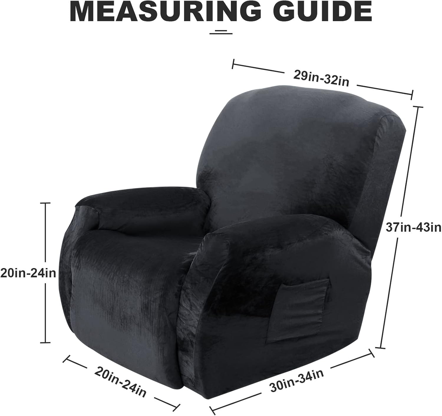 Item Name:Recliner Stretch Sofa Slipcover Sofa Cover 4/6-Pieces Furniture Protector Couch Soft with Elastic Bottom Polyester Spandex Jacquard Fabric Small Checks(Armchair; Love seat recliner)Features:Optional Sizes: other Sizes Can Choose on Product Description (Recliner chair, Love seat Sofa)HIGH QUALITY MATERIAL: 20% spandex+80% polyester,high quality stretchy fabric,soft and comfortableDIMENSIONS:Recliner Slipcover:Fit Total sitting area is 23" -35". More details please refer to the measurement guide in photo, please measure before purchasingFURNITURE PROTECTOR: Protect your sofa from daily wear and stains. Various colors are prepared, you can choose the color you like to coverEASY CARE: Machine washable, wash at temperature around 30 degrees Celsius, mild laundey detergents are advised, please do not bleach,do not iron❤️SUPER STRETCHY FORM FIT FABRIC❤️TRANSFORM YOUR OLD SOFA OR PROTECT YOUR NEW ONE❤️THE SOFA COVER THAT STAYS IN PLACE❤️SAVE YOUR TIME AND MONEY❤️FULL PROTECTION & PERFECT FIT❤️EASY CARE❤️EASY TO INSTALL/PUT ONSize:4-Piece for 1 Seater (Armchair):Suitable for back width: 29-32 inchesSuitable for sofa height: 37-43 inchesSuitable for bottom width: 20-24 inchesSuitable for side width: 30-34 inchesSuitable for sitting height: 20-24 inches4 separate piece covers, including 2 arm covers, 1 back cover, 1 seat cover.6-Piece for 2 Seater (Loveseat):Suitable for back width: 55 inchesSuitable for sofa height: 38 inchesSuitable for bottom width: 47 inchesSuitable for side width: 39 inchesSuitable for sitting height: 25 inches6 separate piece cover, including 2 arm pieces, 2 seat pieces and 2 back cover pieces.Package:Recliner Chair CoverNote:1. More details please refer to the measurement guide in photo, please measure before purchasing.2. Please allow 0.5-1 inch error due to manual measurement.Care Instruction:1. Machine washing in cold, do not bleach, tumble dry low and low iron if needed.2. Due to different monitors or screens, colours may a slightly different as you see, but never change itself attractions.
